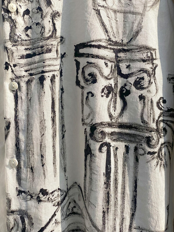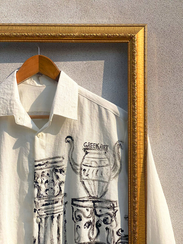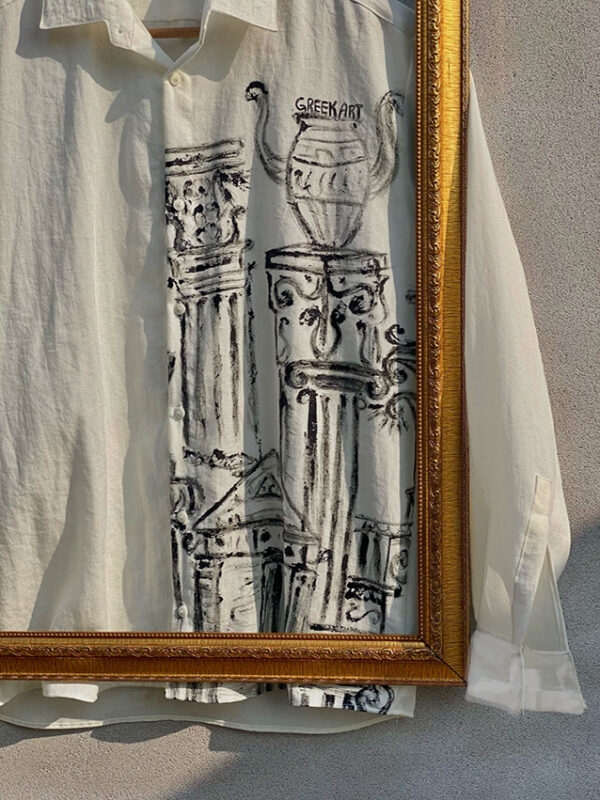 Step into the grandeur of ancient Greece: This oversized shirt features hand-painted designs inspired by iconic Greek architecture, blending art and fashion seamlessly.