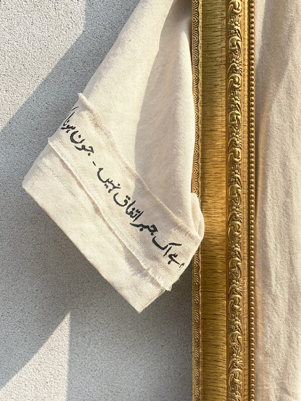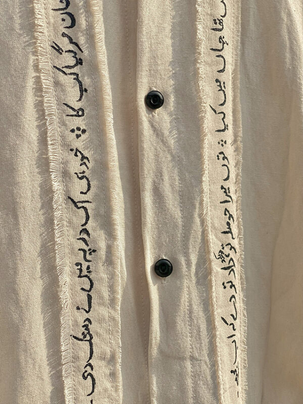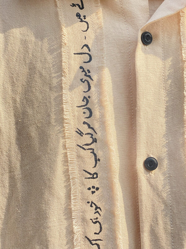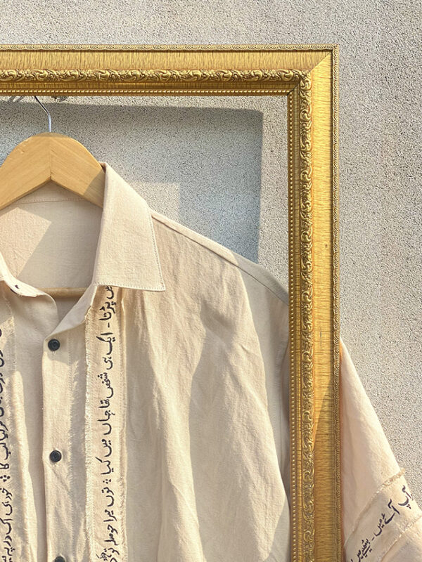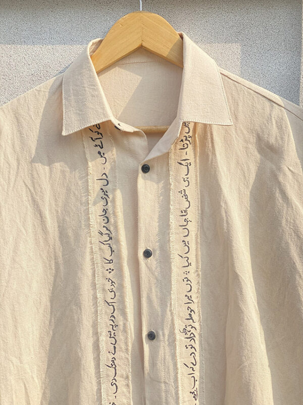 Transform your wardrobe with this stunning hand-written striped shirt, inspired by the evocative poetry of Jaun Elia.