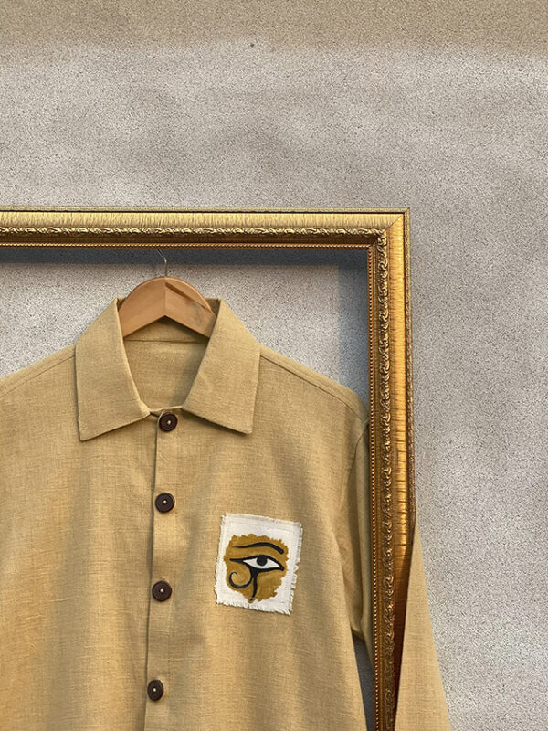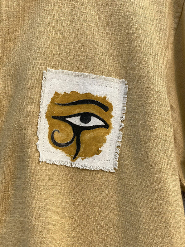 Step into ancient mystique: This hand-painted shirt brings to life Egyptian symbols and scenes, blending timeless history with modern artistry.