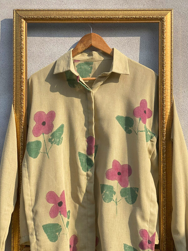 Rustic Grace: A celebration of nature with oversized comfort, dropped shoulders, and hand-pressed leaf and flower patterns.